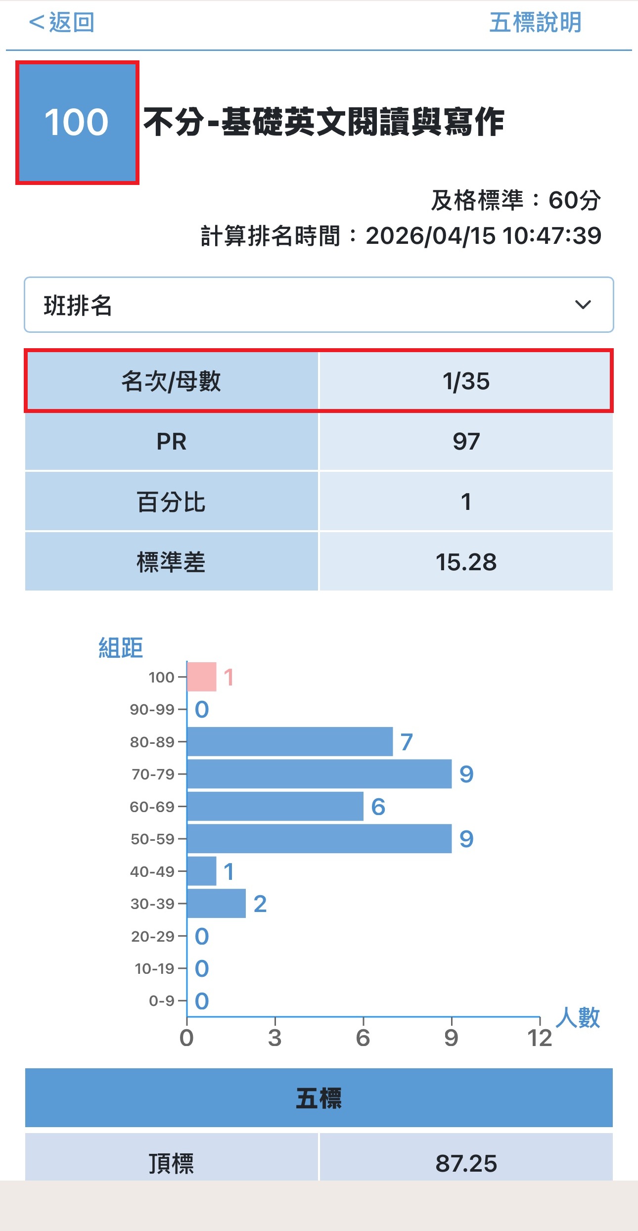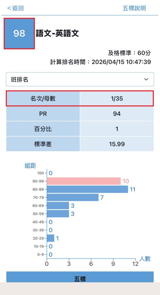 狂賀!!!本班學員於114年學測英文考科榮獲優異成績